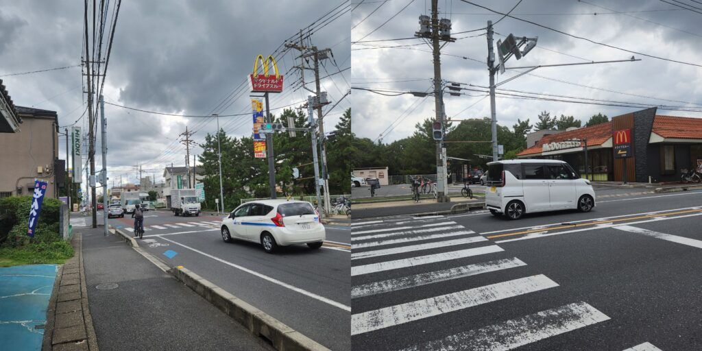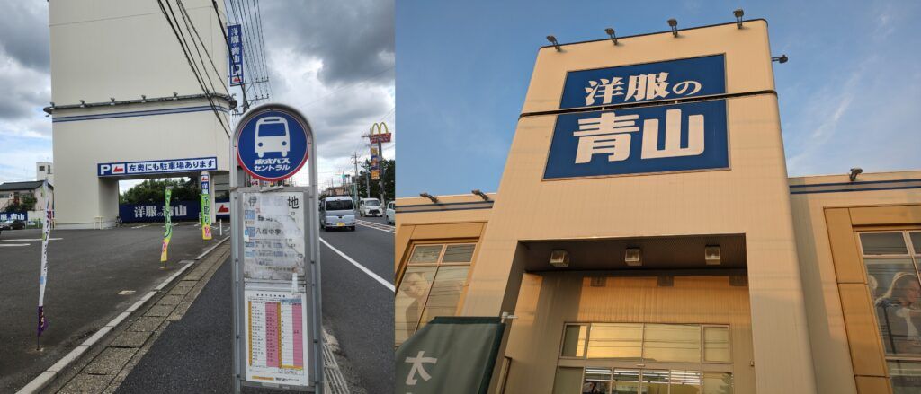 1. 在「伊草团地(伊草団地)」站下车后,根据您乘坐方向的不同,可能会出现在道路的左侧或右侧~环顾四周,您将可以看到一座大型商店「洋服の青山」,请确保它在您的左手边!