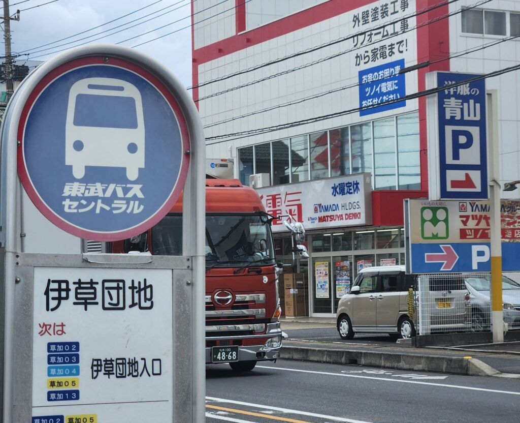 ・无论您是从哪个站出发、乘坐哪一班巴士,都在「伊草团地(伊草団地)」站下车(约12分钟)。
